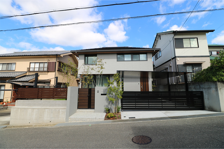 建物にあわせた門塀と利便性の高いカーポート