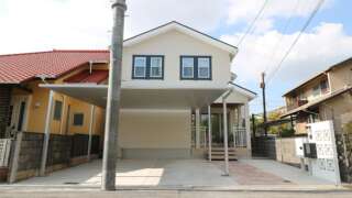 前回施工した駐車場に、カーポート設置のご依頼をいただき、カーポートSCを施工しました。間口・奥行とも、カーポートSCの最大サイズ。木目調の天井材が自然に囲まれた駐車場にピッタリとマッチしています。