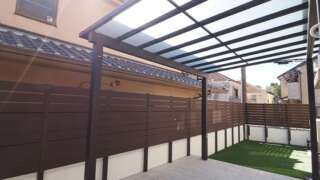 駐車スペースは、ブラックポリカの屋根、サイドスクリーンに囲まれ、しっかりと車を守ります。