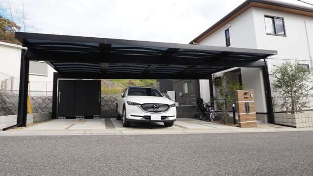 Uスタイル アゼストで敷地間口いっぱいにワイドカーポートを新設